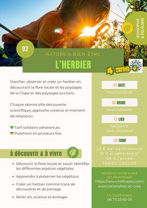Ce catalogue permet de présenter, dans un seul document, la diversité des actions portées par Bio, Oc & Créa,